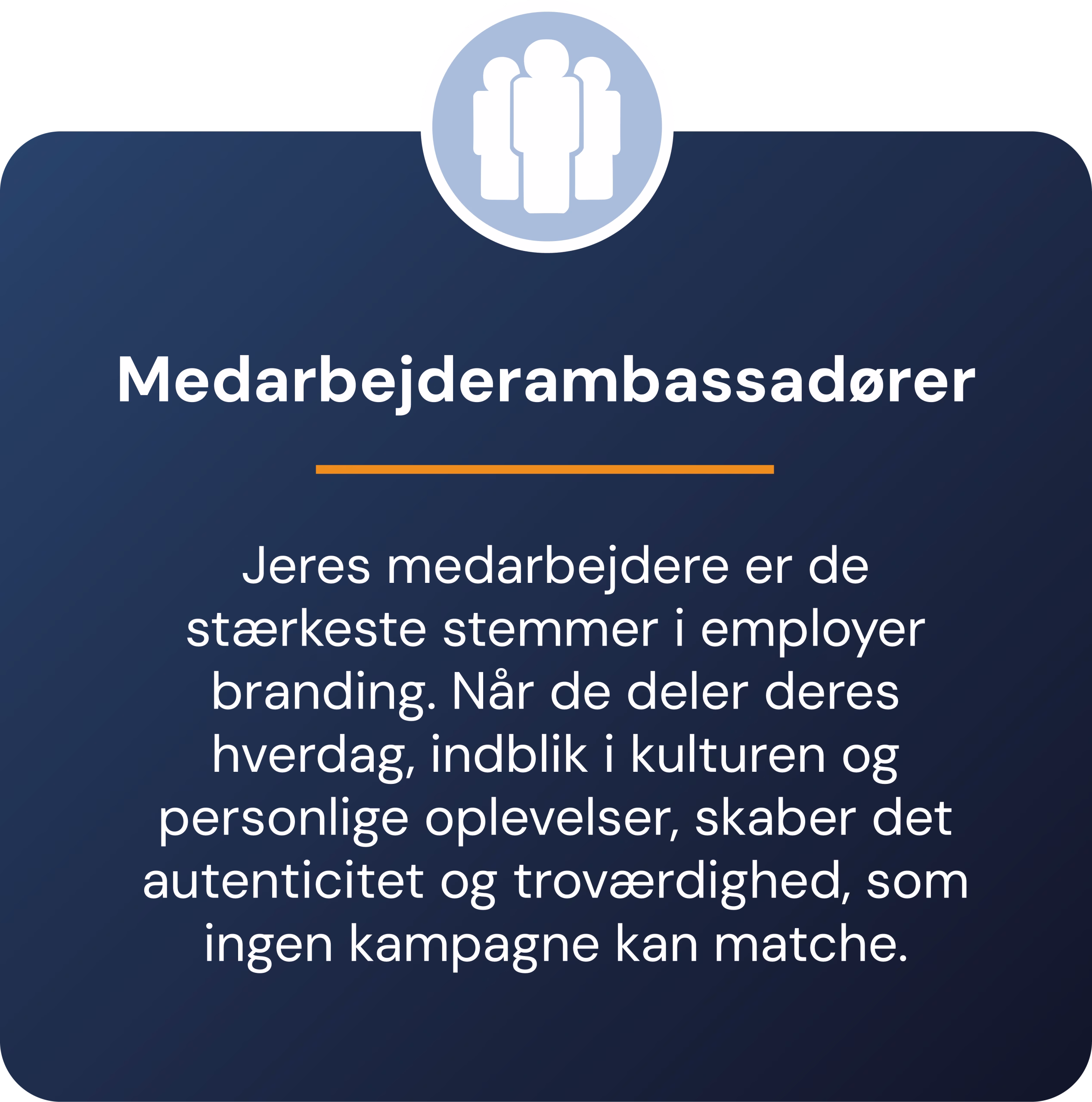 Når medarbejdere deler deres erfaringer i små videoer, billeder, testimonials eller gennem uformelt indhold bliver jeres kultur levende. Det er her, employer branding får sin største effekt, fordi modtageren møder virkelige mennesker og ægte arbejdsglæde.